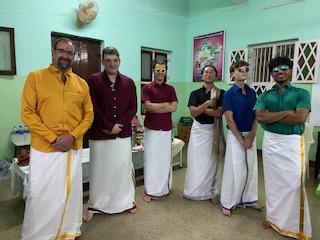 After our lunch we went to buy veshties and sarees. Due to the amount spent we were able to give the sister the large pans given. When we came back we had a little break before our dinner. We were too excited to wait to try our veshties so we tried it on and admired ourselves before getting changed for dinner.